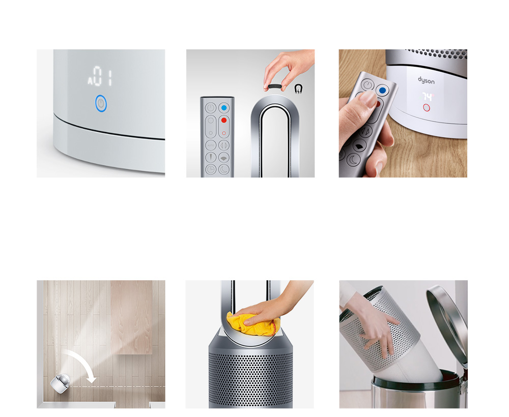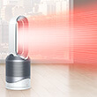 Dyson Pure machines will automatically monitor air quality and adjust airflow accordingly. With the Pure Hot+Cool™ purifier fan heater, set the target temperature for your room, and your machine will warm you and keep it there.