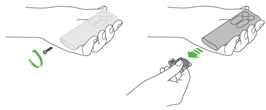 Unscrew the battery compartment on the remote control. Loosen the base and pull to remove the battery.