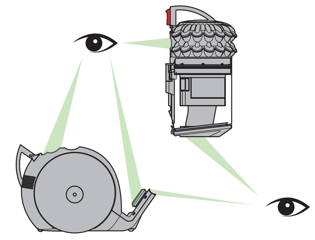 - Check the cyclone, bin, duct grille and hose inlet for blockages; remove as necessary.