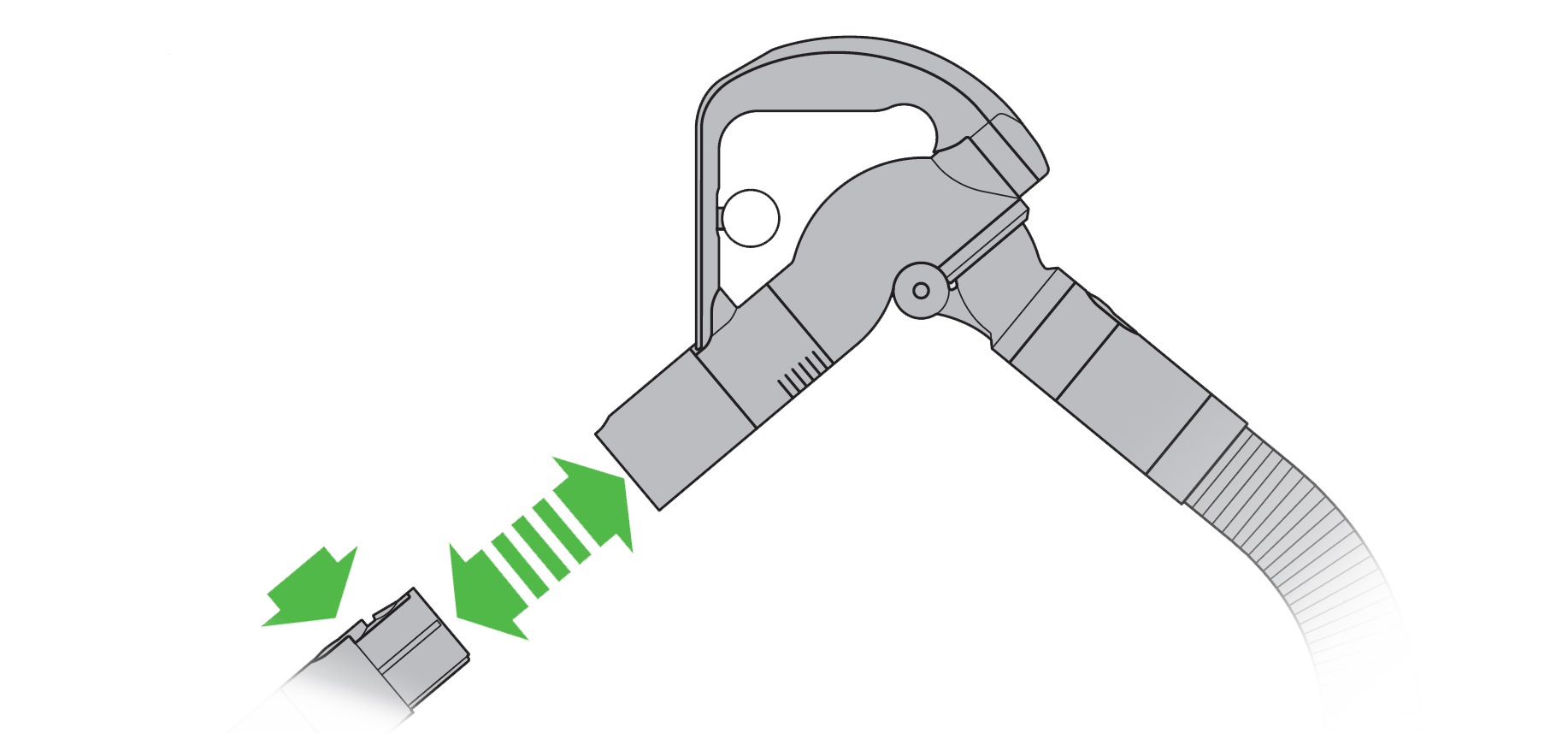 - Separate the extension tube from the wand handle by pressing the release catch on the hose.