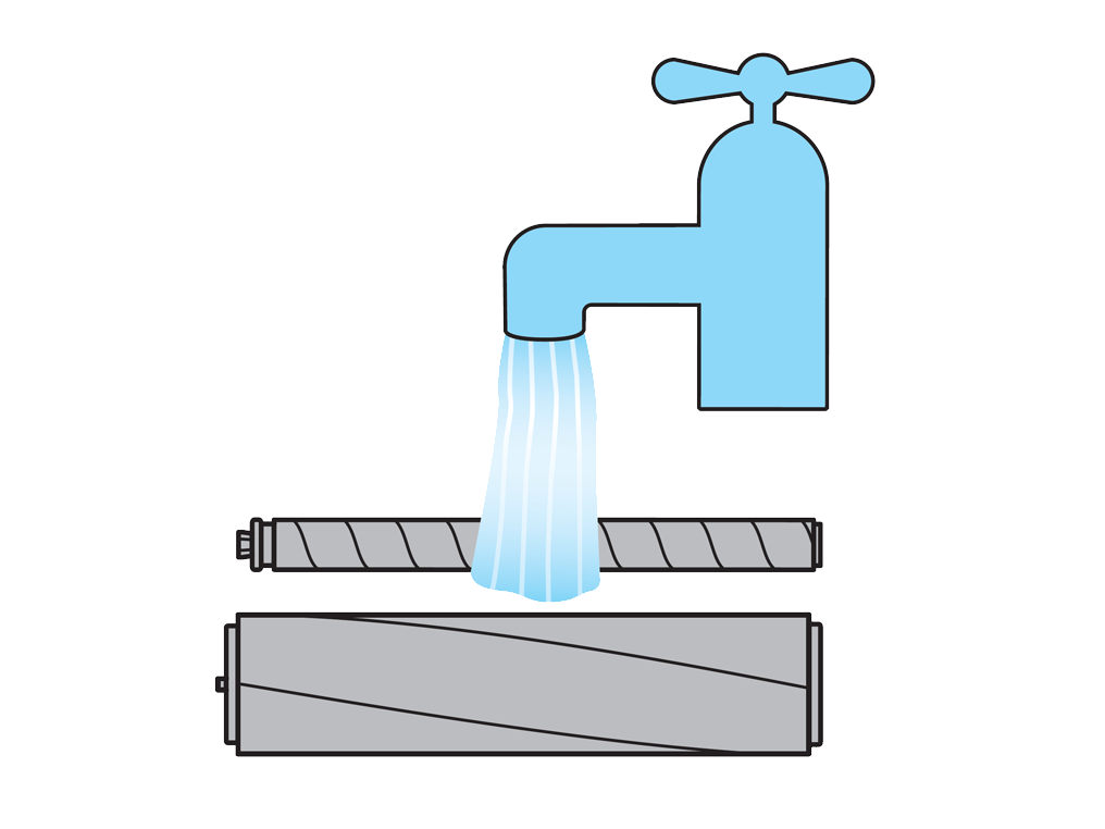 Wash both the large and small brushbar until the water runs clear.