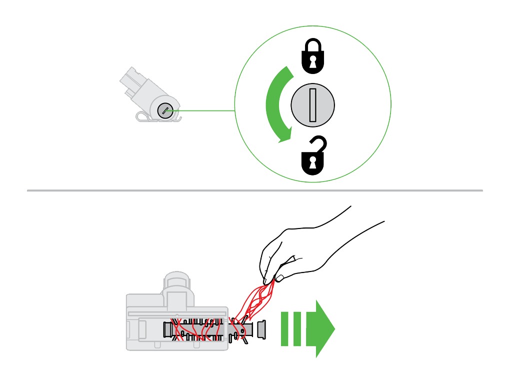 Carefully remove the brushbar and clear any debris.