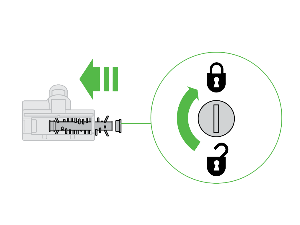 Use a coin to unlock the fastener marked with a padlock.