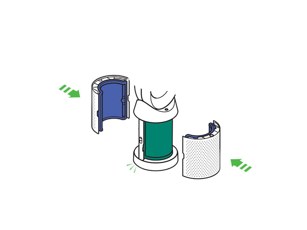 Empty the glass HEPA filters directly into the bin by pushing in both the purple tabs on the shrouds.Dispose of used filter units in accordance with local regulations.