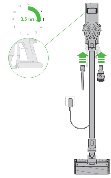 Not charging - contact Dyson helpline. |