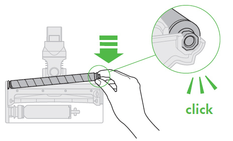 brushbar into place. Push down the octagonal end until it clicks into place.