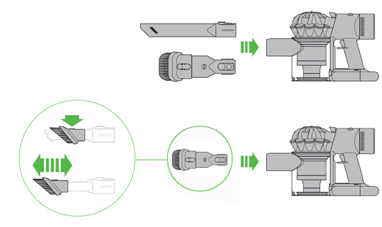 Slide the accessories into the inlet pipe on the bin assembly until they 'click' into position.