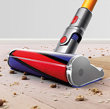 Invented for hard floors. Soft roller cleaner head helps remove large debris and fine dust simultaneously.