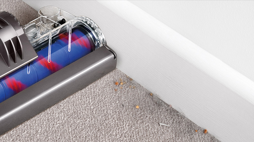 Dyson engineers have stripped back the design of the cleaner head so that the brush bar has end to end coverage. No more irritating dirty strips at the base of skirting boards and cabinets.